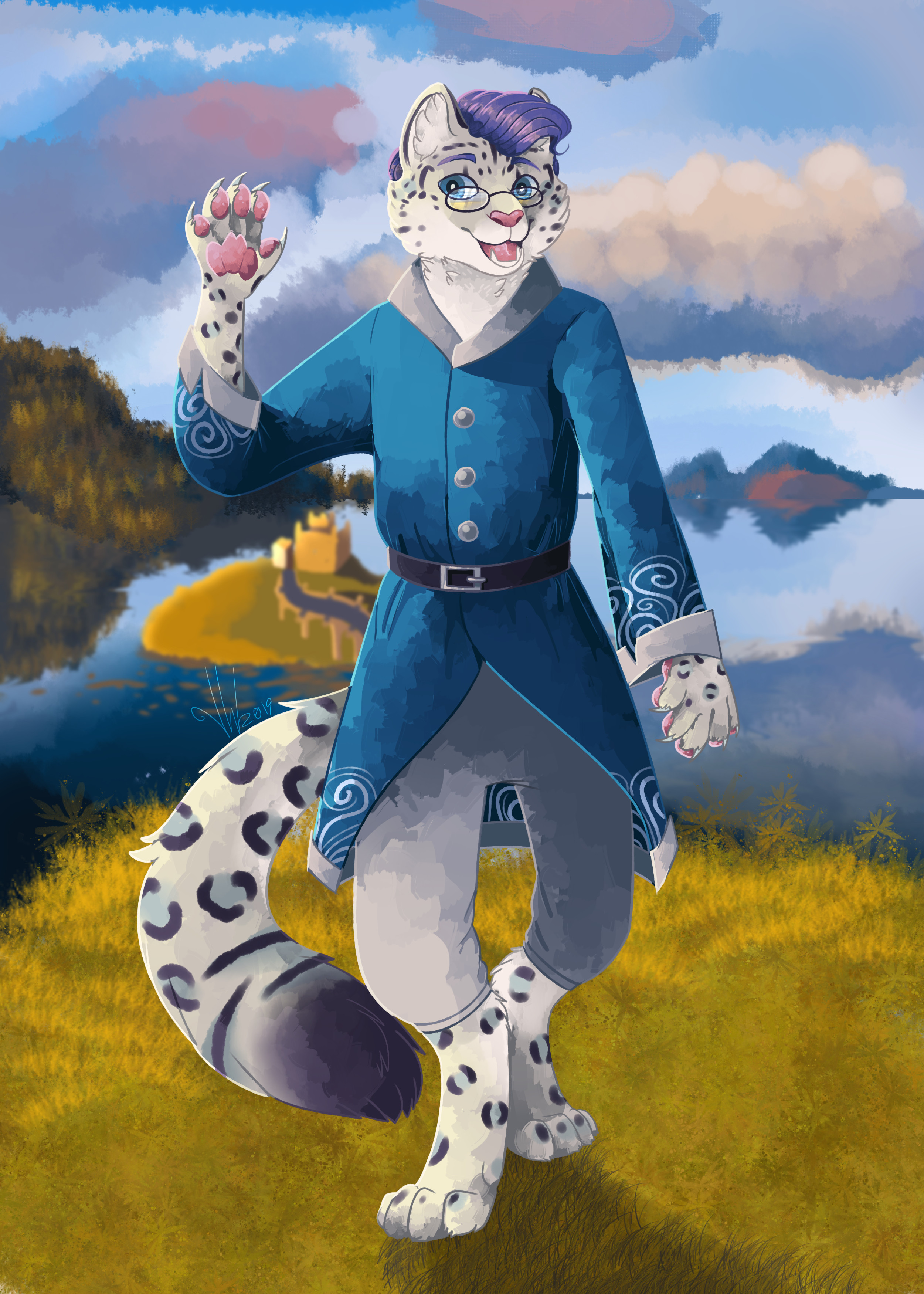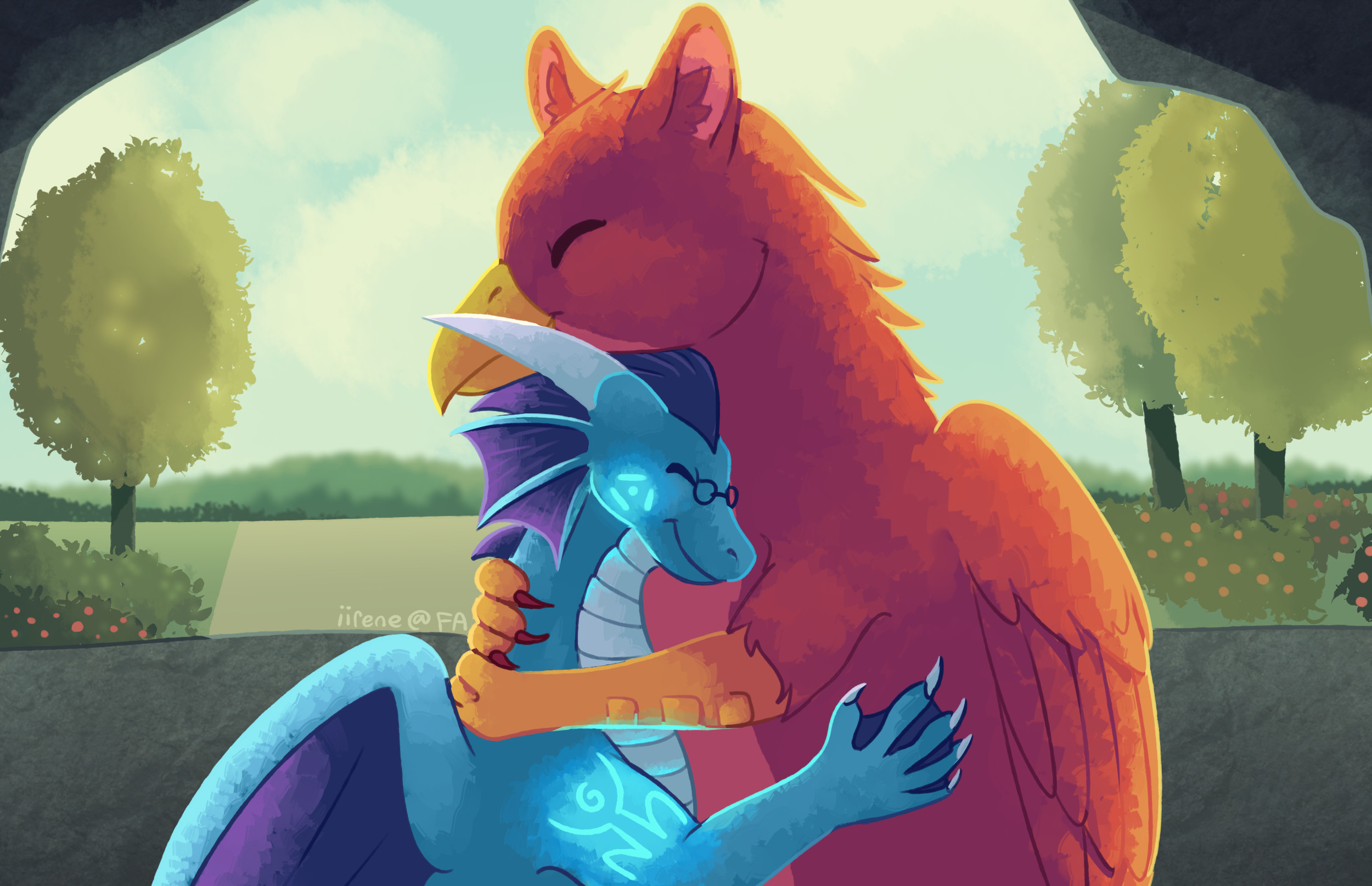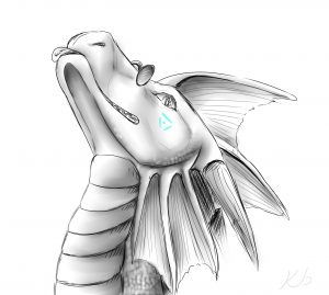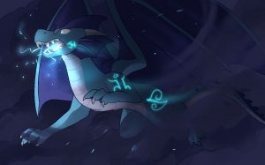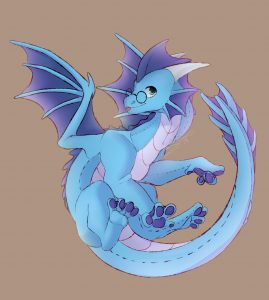 The blue nerd is covered in thick blue scales from head to toe that are always warm and pleasant to the touch. Down his throat and over his underbelly are covered in a series of lighter creme colored armored plates. Amius’ face is rather angular, thinner, and closer to a female dragon’s build at all times despite being male. On his shoulders and cheeks respectively light blue runes seemed to be etched into his scales, each rune a physical carving into the scales that you can feel tactility as an indent. They also glow gently in the dark unless inactive.