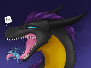 He’s small, not like micro, but as far as dragon standards go, he’s tiny. He’s just about the size of a horse when normal, but due to shenanigans he can easily be as small as a mouse.